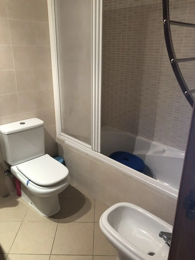 La solución: una mano de pintura, conectar la ducha con la ducha del baño contiguo y cambio de las piezas de baño.
