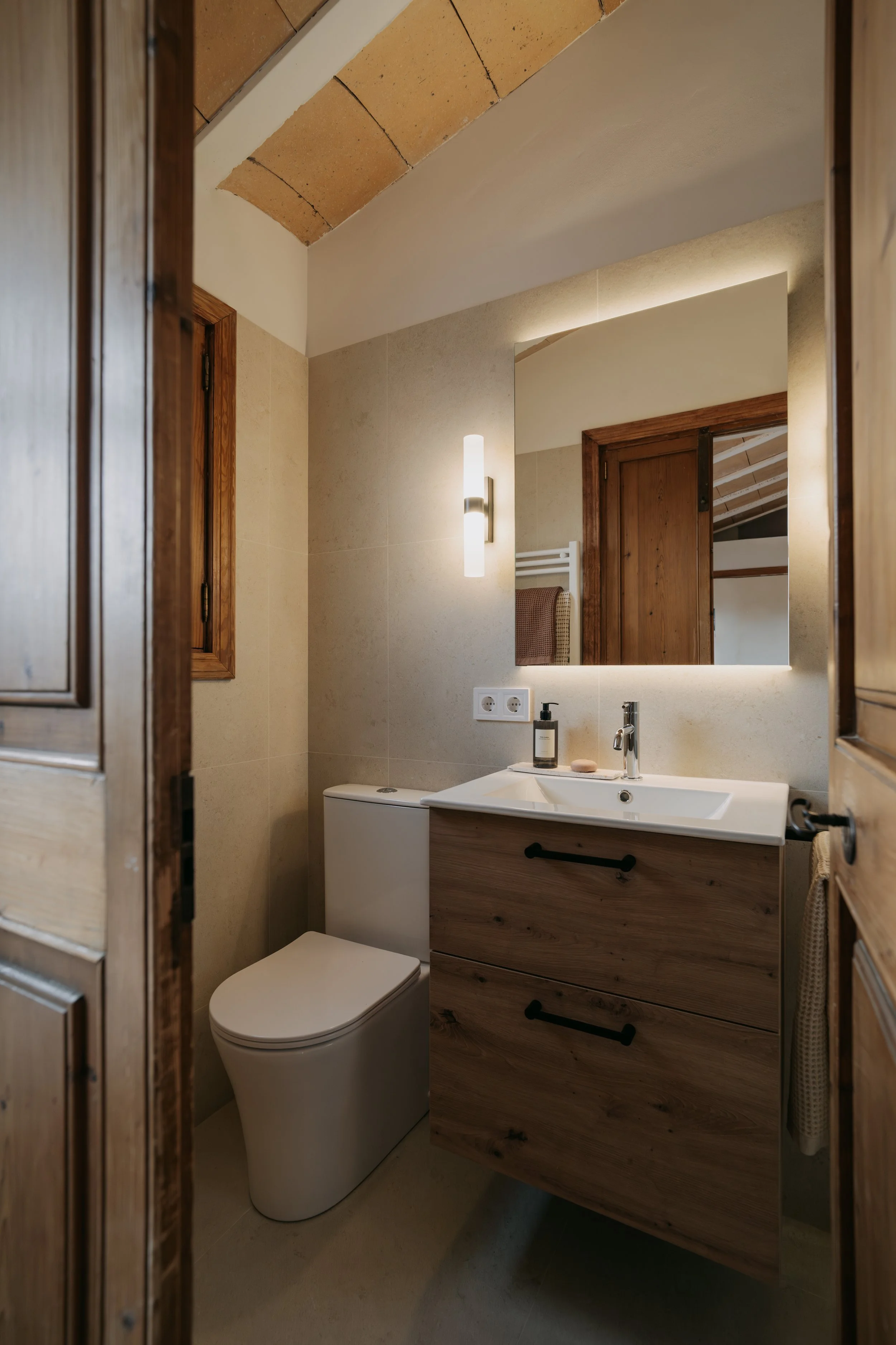 El objetivo del proyecto fue renovar el baño manteniendo la identidad mallorquina original, aportando mayor luminosidad, amplitud y una estética más actual, sin perder el carácter rústico que lo hace único.